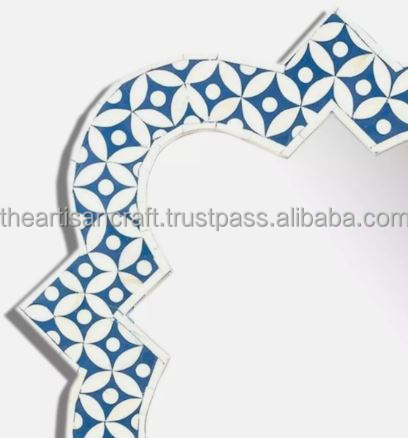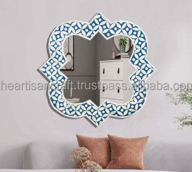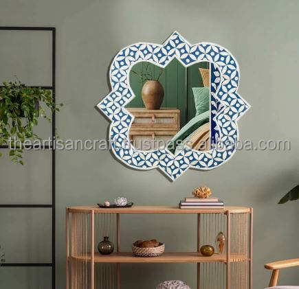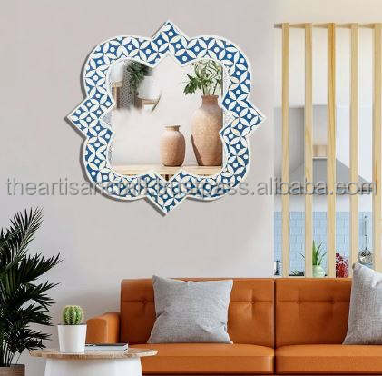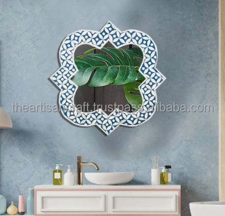 Handcrafted Bone Inlay Decorative Wall Mirror for Living Room Bedroom or Entryway Floral Design and Bohemian Home Decor Style