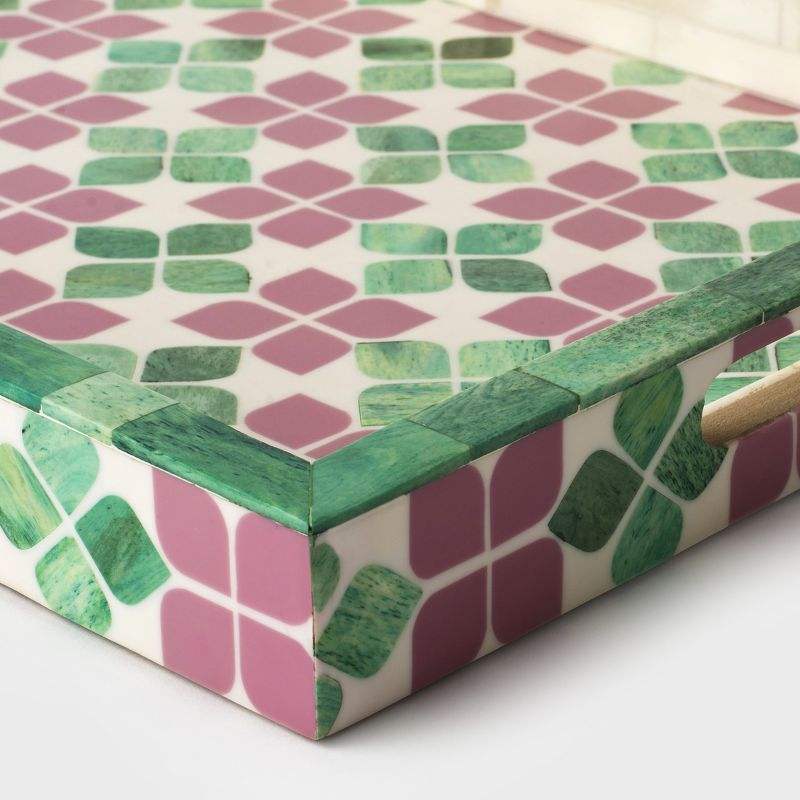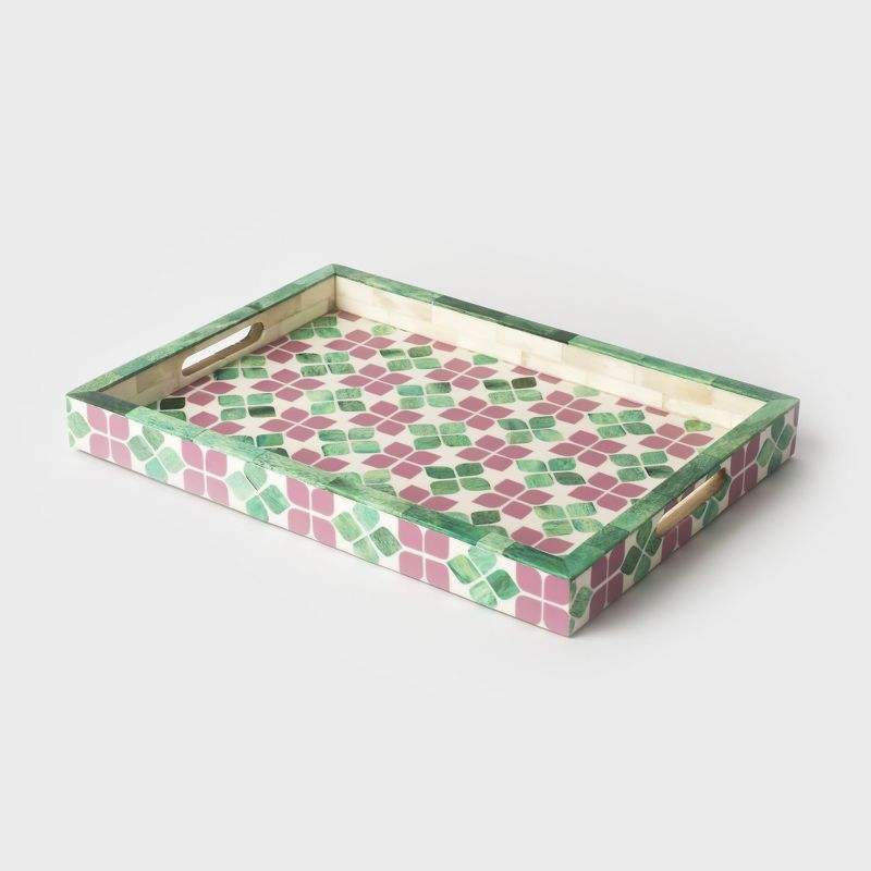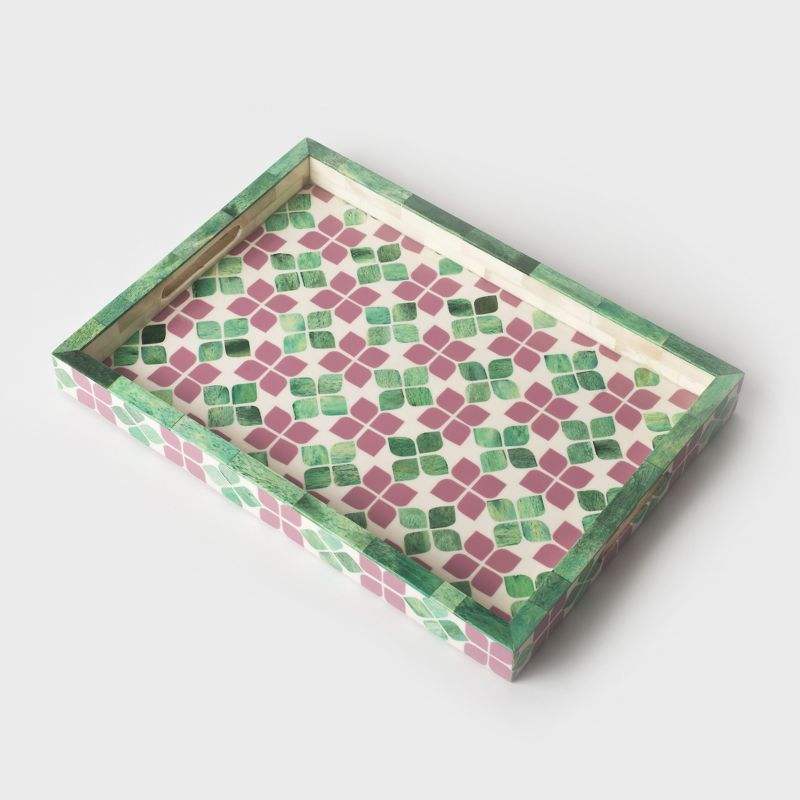 Plateau d'incrustation d'os meubles de maison usage général et plateau d'incrustation d'os floral noir plateau de service d'incrustation d'os