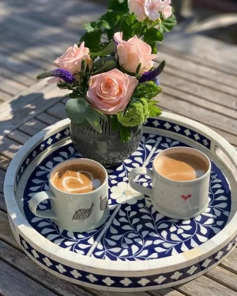 Plateau de service fait main pour hôtel et restaurant Plateau incrusté d'os avec poignée pour café, thé et boissons froides pour la cuisine à domicile
