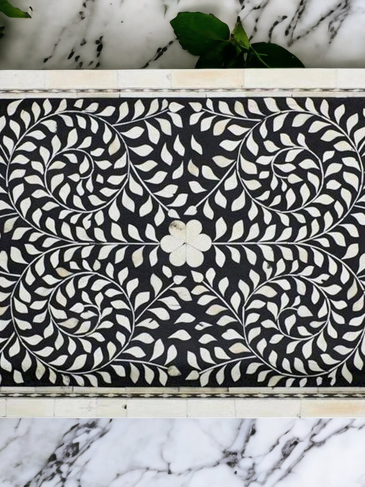 Plateau rectangulaire en os incrusté d'Inde pour servir la nourriture en cuisine lors d'occasions spéciales - PLATEAU EN OS INCUSTÉ
