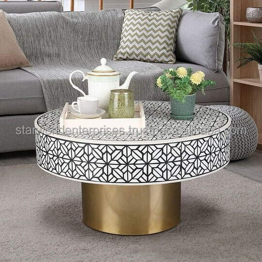 Table basse de salon contemporaine faite à la main de qualité artisanale naturelle incrustée d'os avec côté de style fantaisie pour la vente à l'exportation