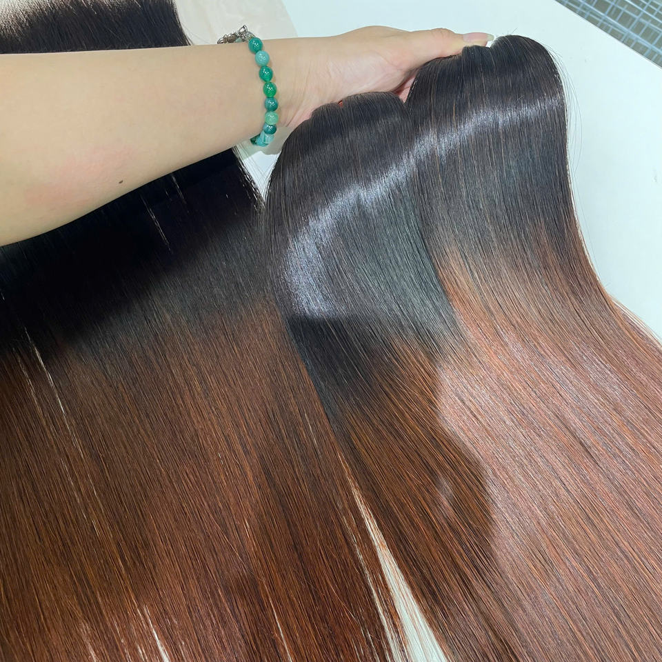 Ensemble de pointe brune droite en os faisant une perruque avec frontal vietnamien de haute qualité