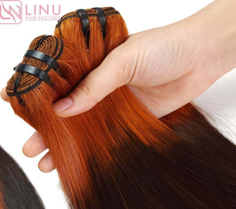 Os droit fabriqué à partir de 100% cheveux humains vietnamiens Ombre Orange trame faisceaux de cheveux vierges au prix de gros