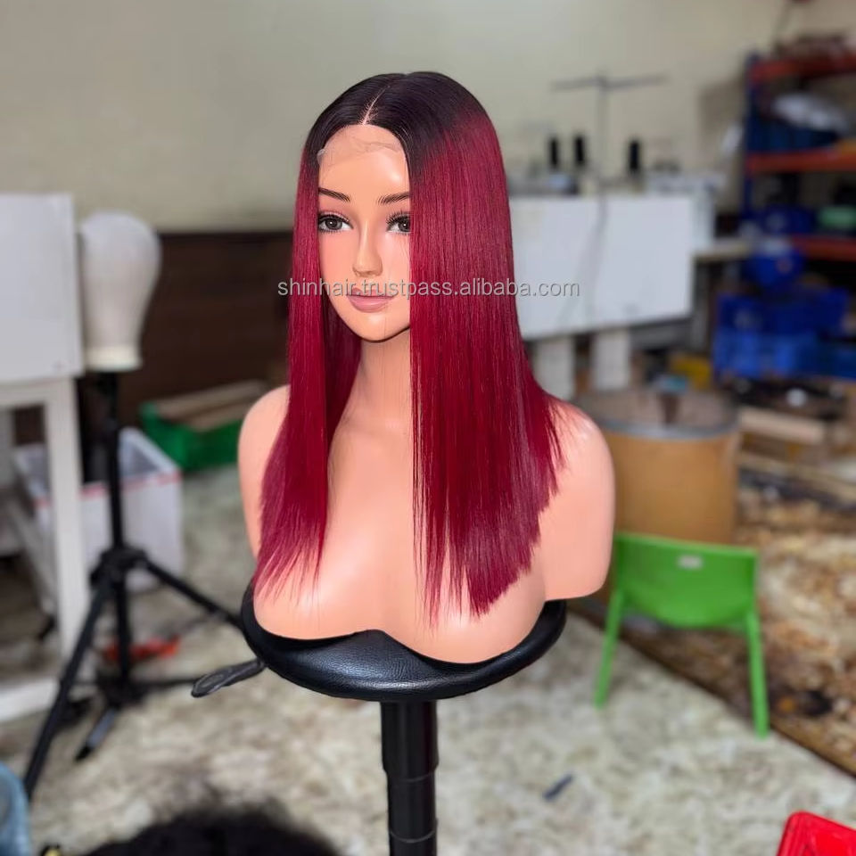 Perruque Lace Front Rouge Bourgogne Ultra-Lisse en Cheveux Humains Vietnamiens Bruts à 100% (Donateur Unique et Cheveux Vierges)