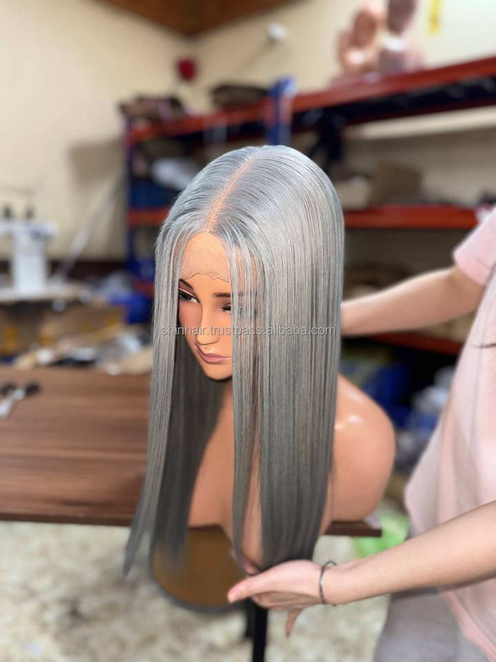 Cheveux humains vietnamiens droits HD Lace Front, perruque de cheveux humains de couleur grise, extensions de cheveux humains Cheveux du Vietnam