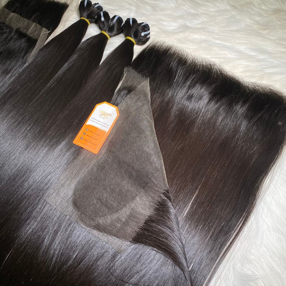 Bone Straight Virgin Hair HD Lace Frontal 13*4 et 13*6 Bone Straight Raw Hair Frontal And Weft Bundles Vente d'usine