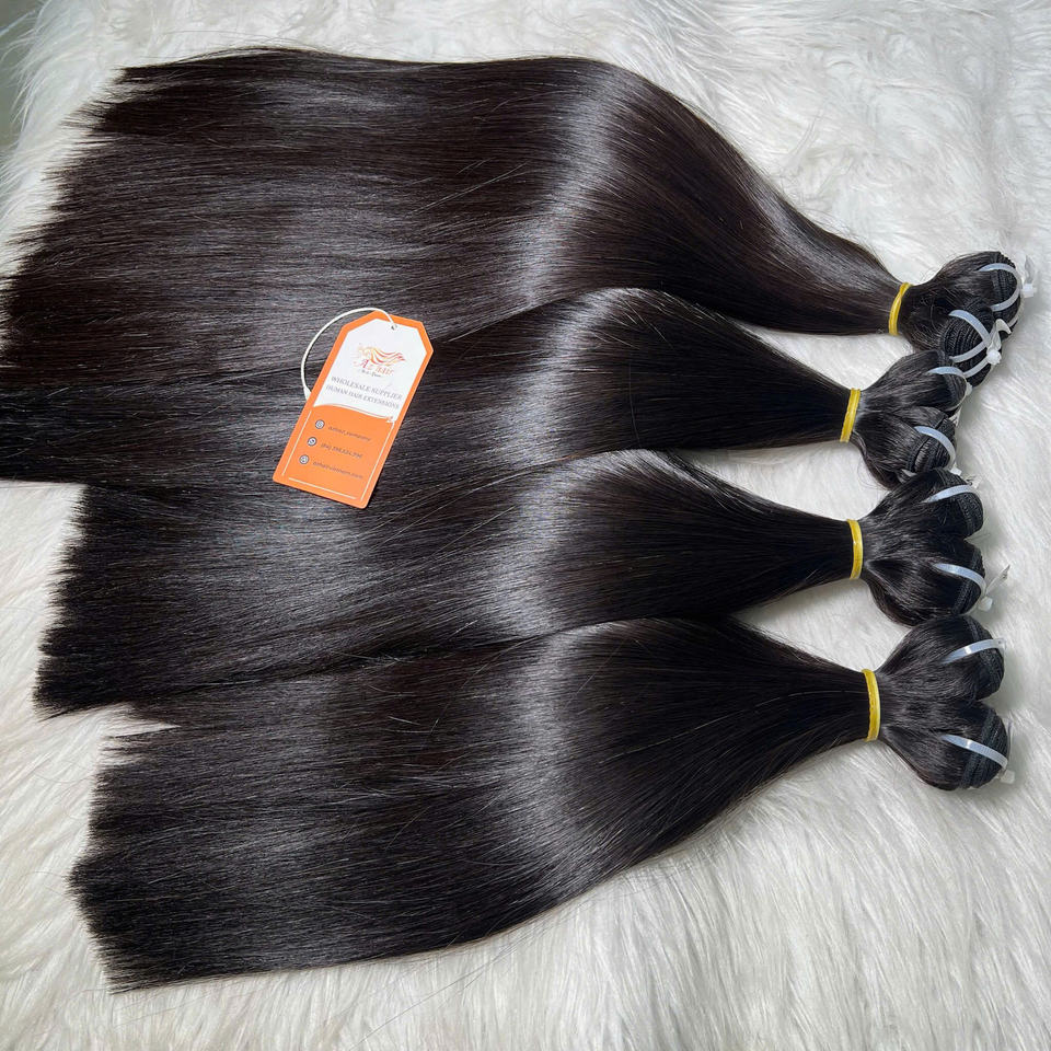 Trame osseuse droite brute un seul donneur couleur naturelle 1B extensions de cheveux humains vendeur vietnamien Double matériau HD dentelle