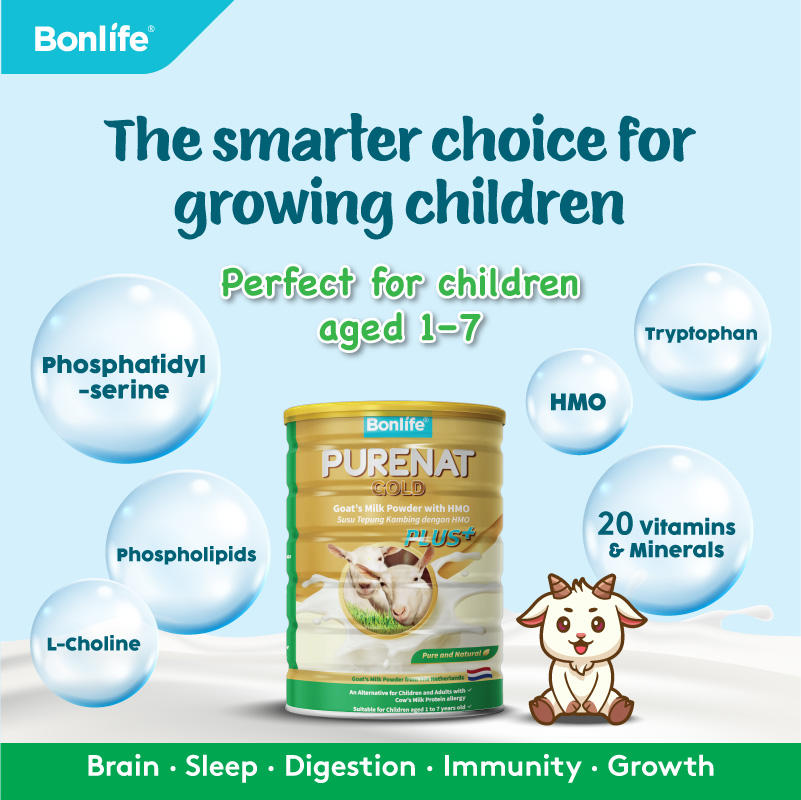 Lait de chèvre Bonlife Purenat Gold Plus pour enfants avec DHA, HMO, prébiotiques, calcium et choline (400Can)