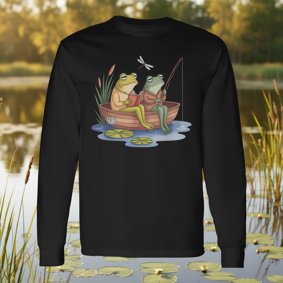 T-shirt à manches longues vintage Book Frog Toad Fishing