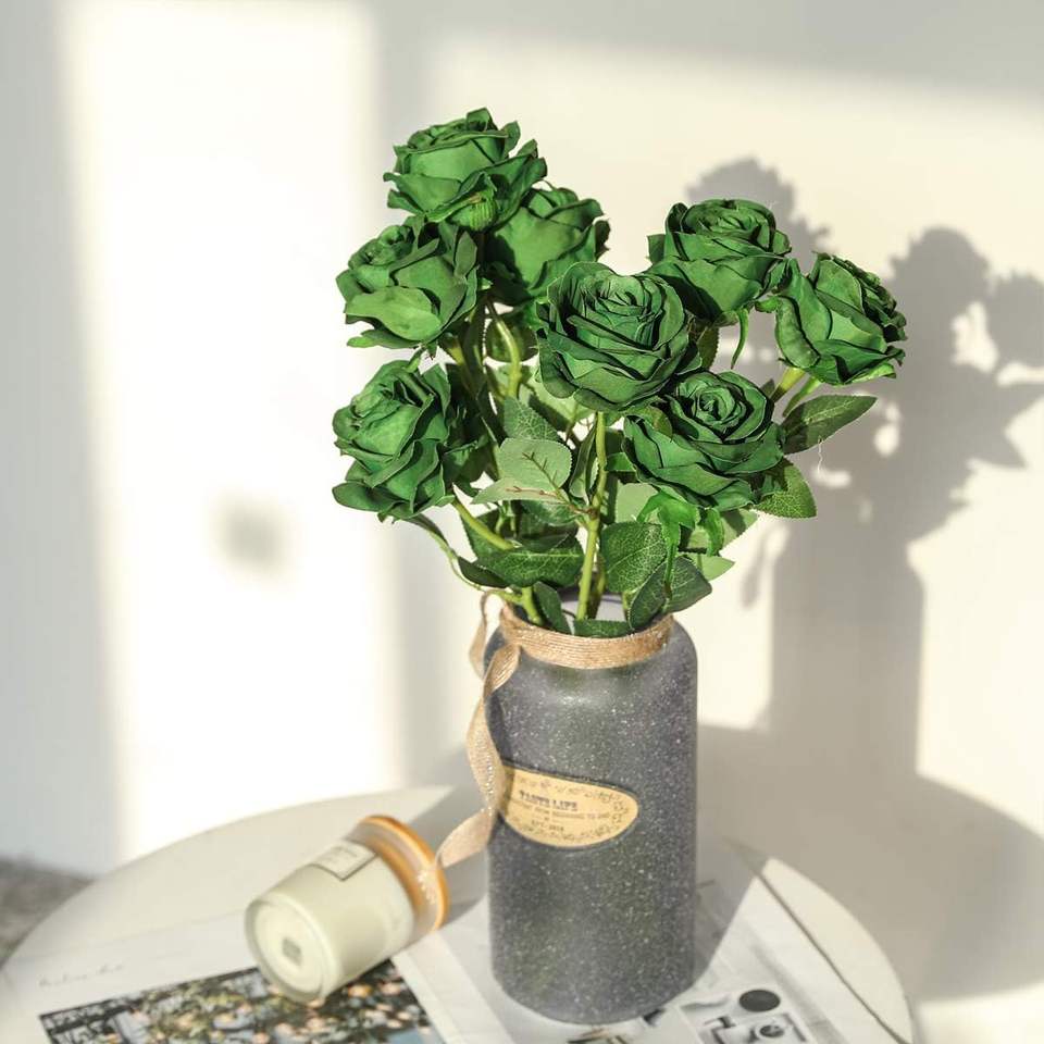Roses vert olive en pleine floraison Fleurs artificielles Roses en soie Toucher réel Bouquet de mariée pour la décoration florale de la maison du jardin de la fête