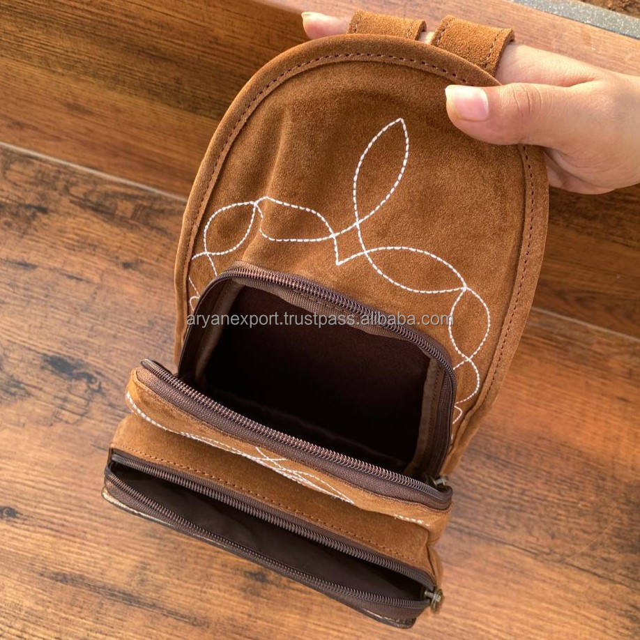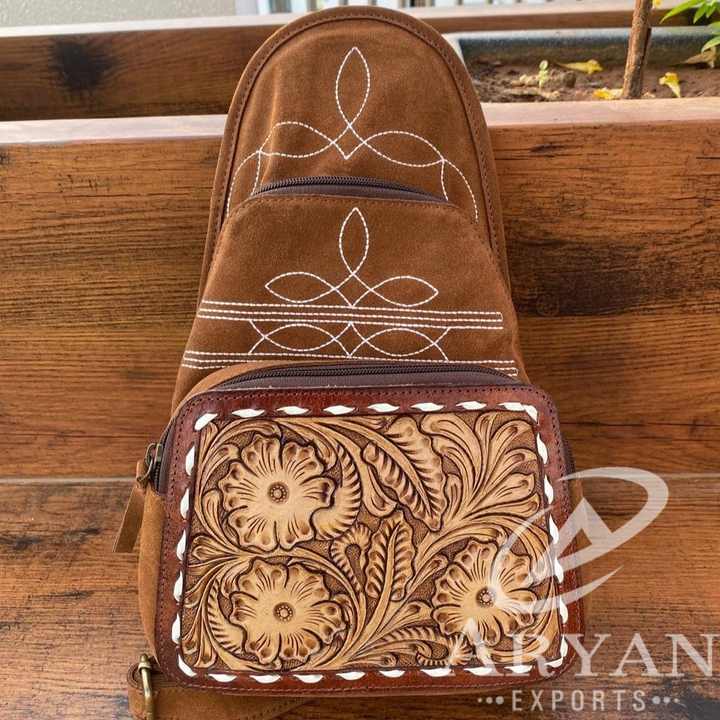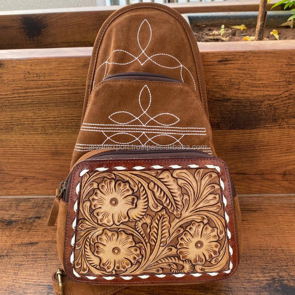 Product Name:Hand Tooled Suede Leather Sling Bag