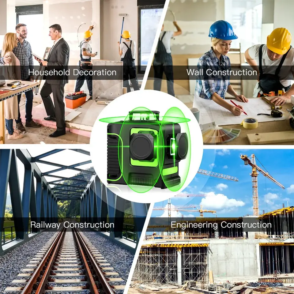 Niveau Laser Rotatif Mini Borka 360° Ligne Croisée Verte Auto-Nivelante 16 Lignes 4D Outil Professionnel pour Construction Bricolage Usage Industriel