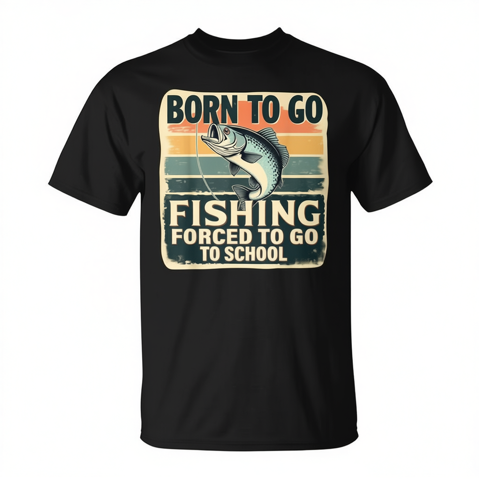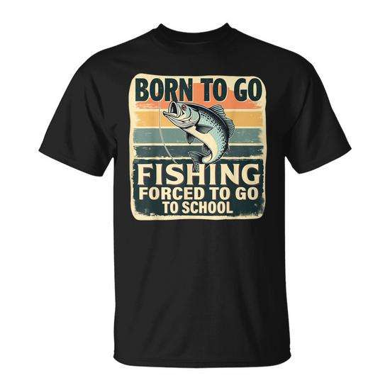 T-shirt unisexe à manches courtes et col rond pour enfants et jeunes, Born To Go Fishing Forced To Go To School