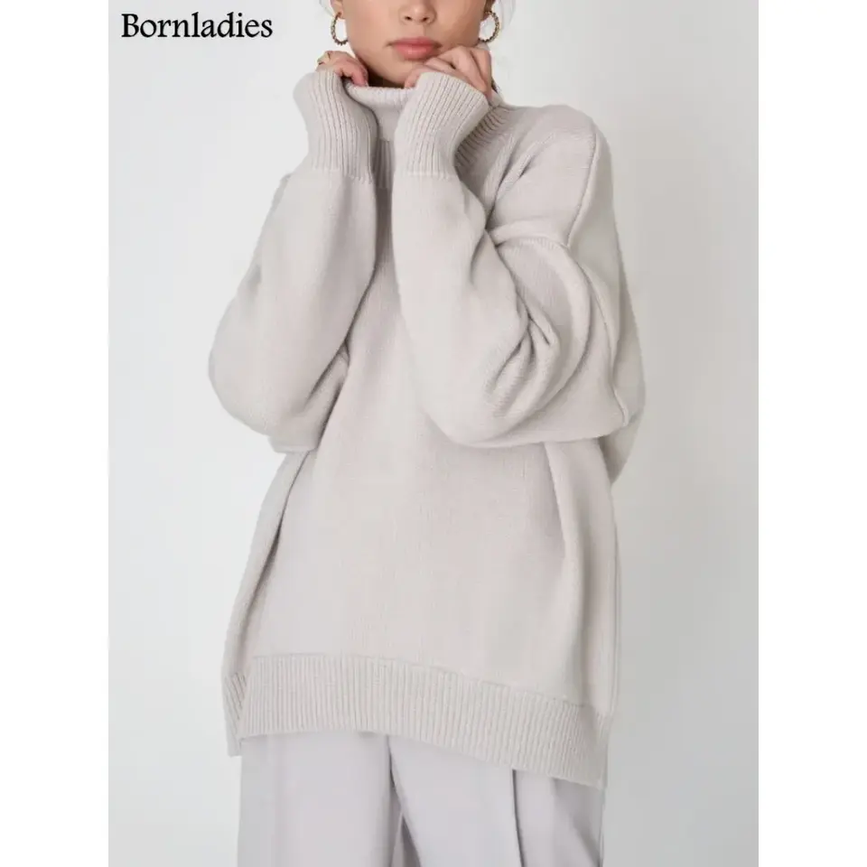 Bornladies Chic Women's Turtleneck Sweater Thick Warm Oversized Pullover Autumn Winter Casual Loose Knitted Jumper Top