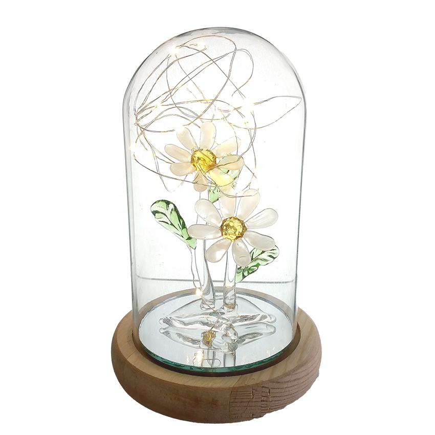 Dôme lumineux LED en verre borosilicate, fleur artificielle, décoration de la maison, multicolore