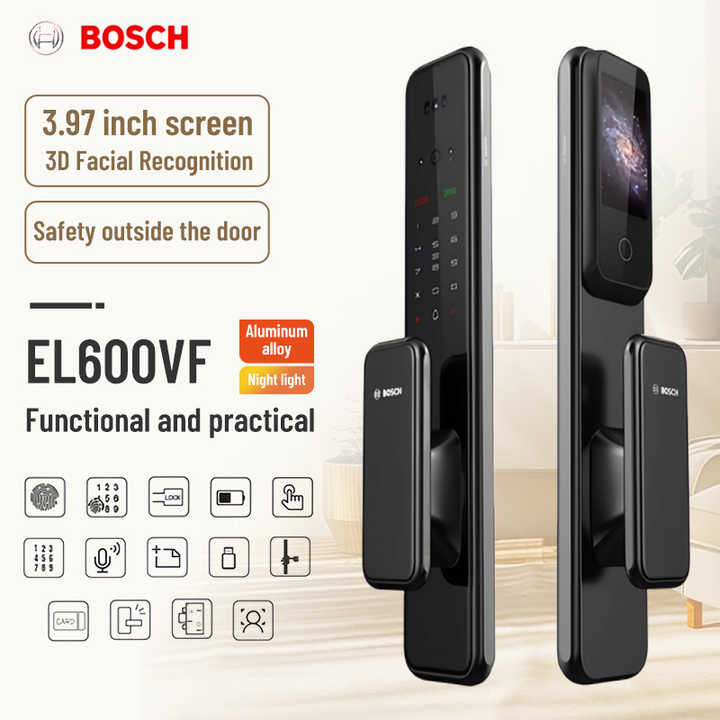 Serrure intelligente Bosch entièrement automatique EL600Vf Reconnaissance vidéo faciale empreinte digitale et mot de passe Accès par clé de porte WiFi Cloud Home