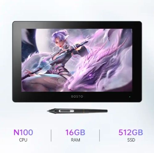 Tablette graphique Bosto X5 Tout-en-un Ordinateur de dessin Tablette de dessin 15,6 pouces Ordinateur à stylet Tablette de dessin Ordinateur PC pour la conception