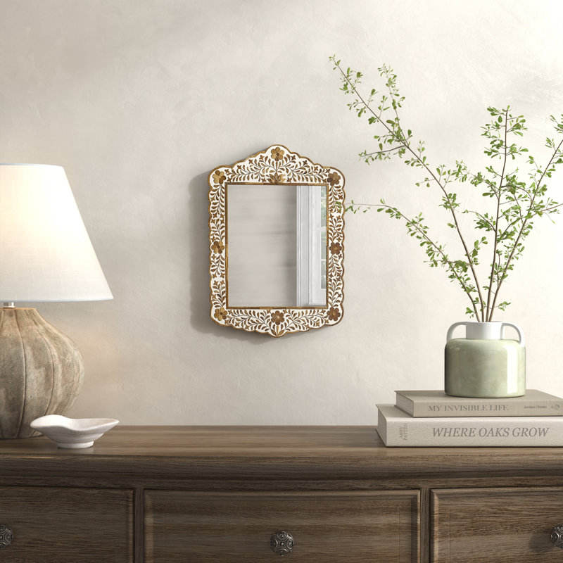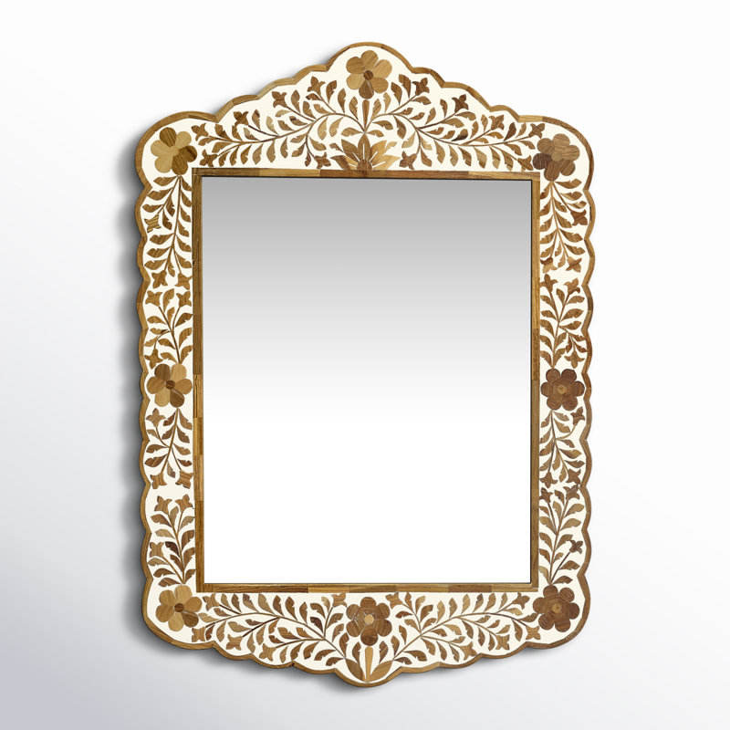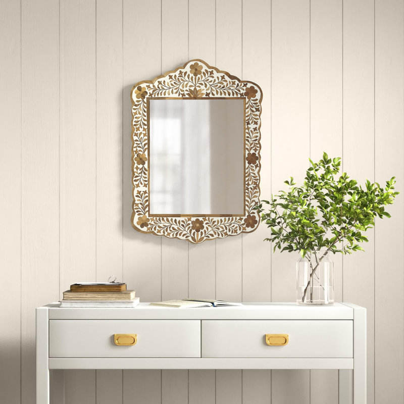 Incrustation d'os botanique, miroir mural en détresse traditionnel, caractéristique décorative