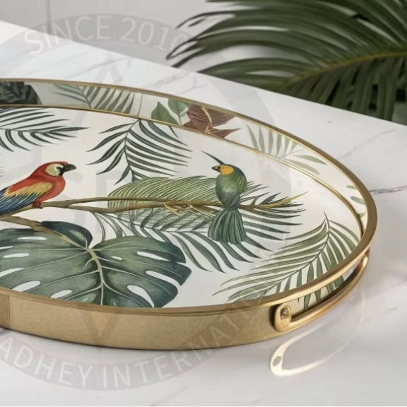Plateau de service ovale en bois gaufré botanique-Design de luxe moderne écologique et durable allant au lave-vaisselle