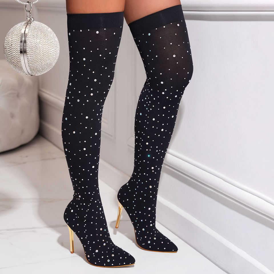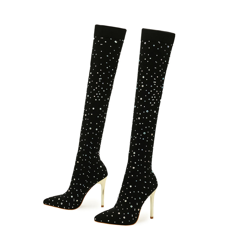 Bottes hautes pour femme, grande taille 43, sexy, longues, au-dessus du genou, à talon aiguille, avec chaussettes élastiques, pour femmes