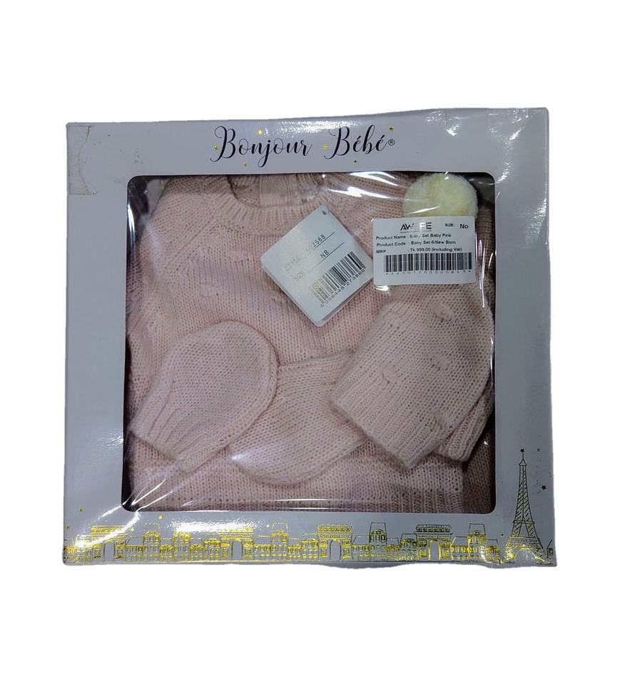 Pull d'hiver pour bébé Botex, col rond, bonnet, chaussettes unies, gants, motif en laine/viscose, écologique, respirant, anti-rétrécissement