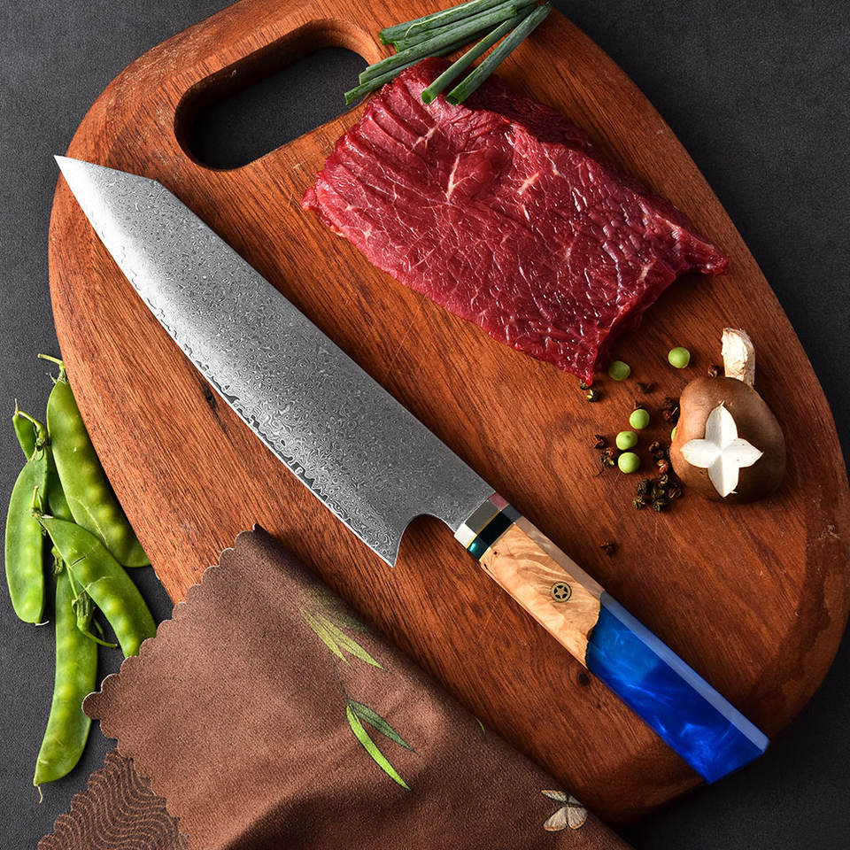Les deux couleurs Design couteau de Chef 8 pouces professionnel japonais en acier damas couteau de Chef de cuisine avec manche en bois de résine pour chef