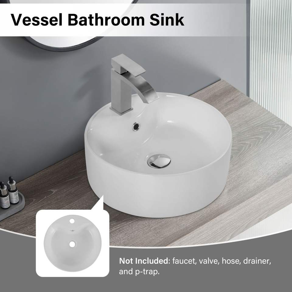 Lavabo en céramique rond à poser sur plan de travail Bothwa Home, finition blanche, certifié CUPC, pour salle de bain