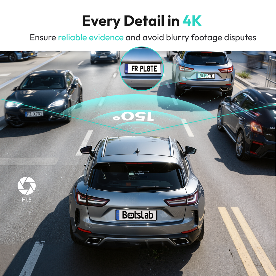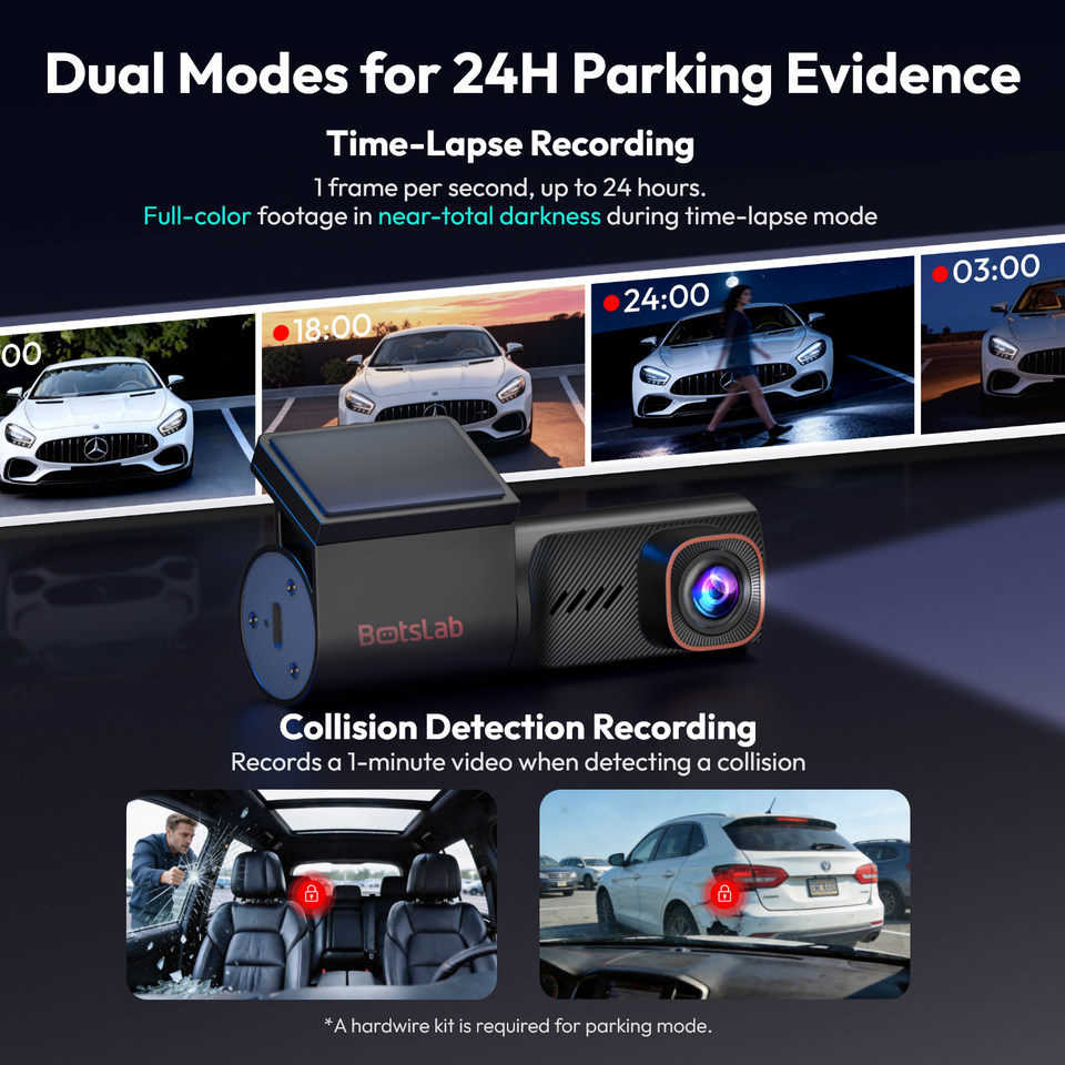 Caméra embarquée Botslab HK40 Plus avec écran IPS 4K, objectif rotatif à 360°, vision nocturne WDR, Wi-Fi 5G et moniteur de stationnement
