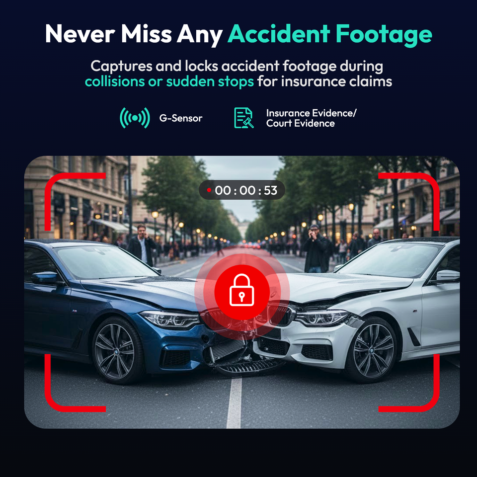 Vision nocturne, Contrôle de l'application, Enregistrement en boucle, Moniteur de stationnement, G-sensor