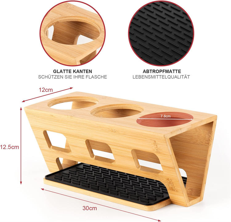 Porte-bouteille Compatible avec Soda Stream Duo et bouteilles d'eau Standard 3 porte-gouttes en bambou égouttoir
