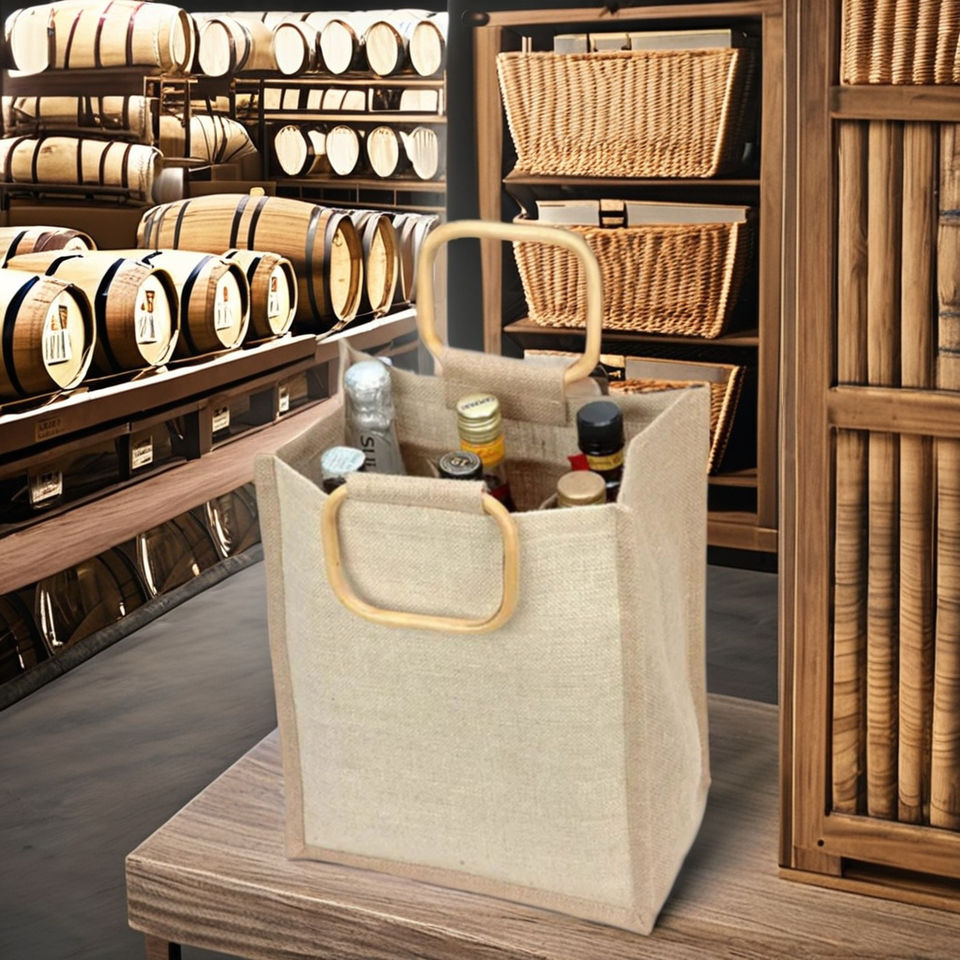 Bottle holder bag made of 100% jute custom shop bags for markets & malls