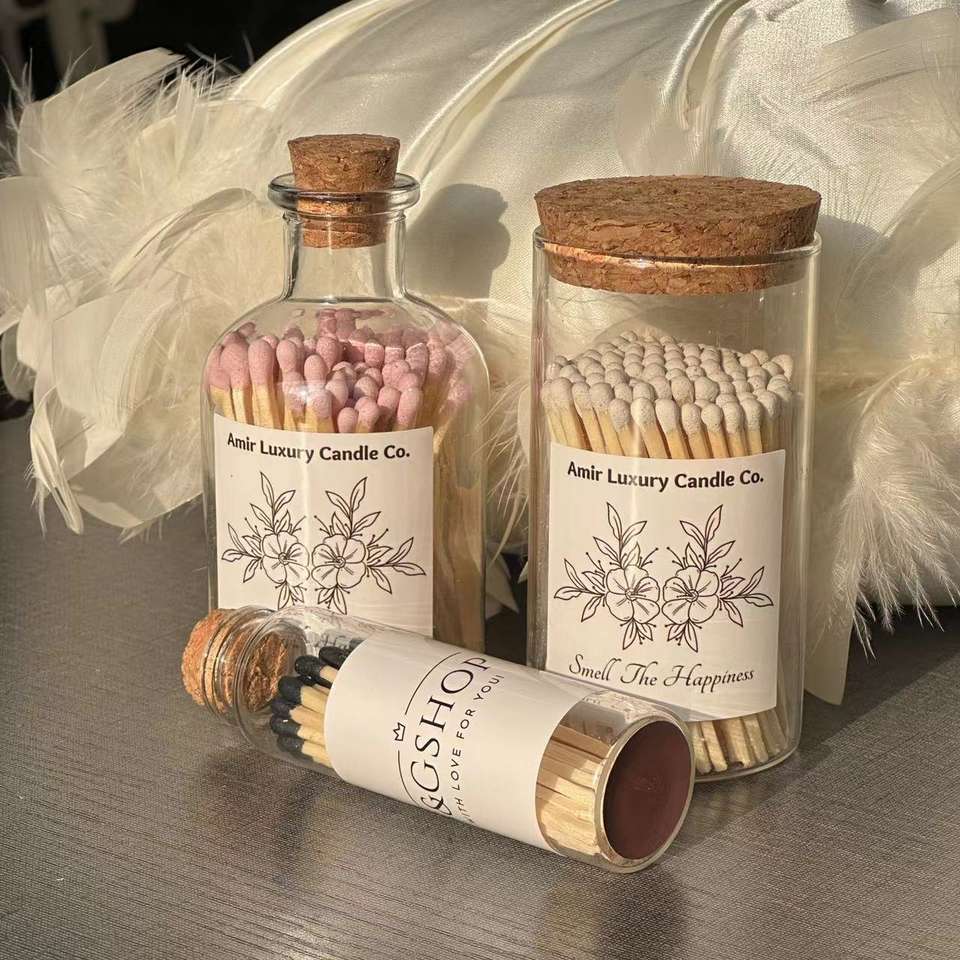 Boîte en verre avec logo personnalisé, boîte à bougies en bois bon marché, boîte de sécurité d'usine, bâtonnets de bougies, couleur hôtel, allumettes de luxe en vrac