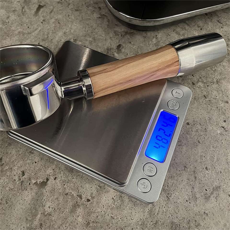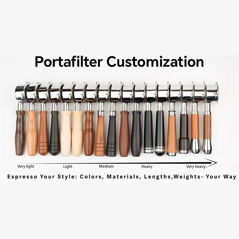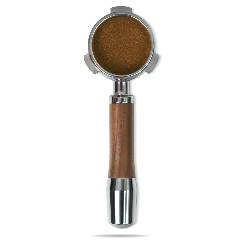 Porte-filtre sans fond, compatible avec le porte-filtre Barista Express, avec poignée en bois d'olivier et en acier inoxydable