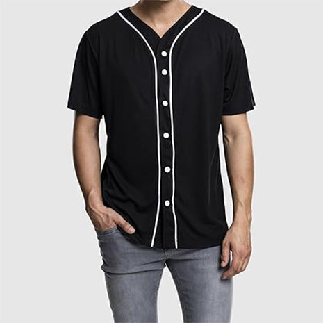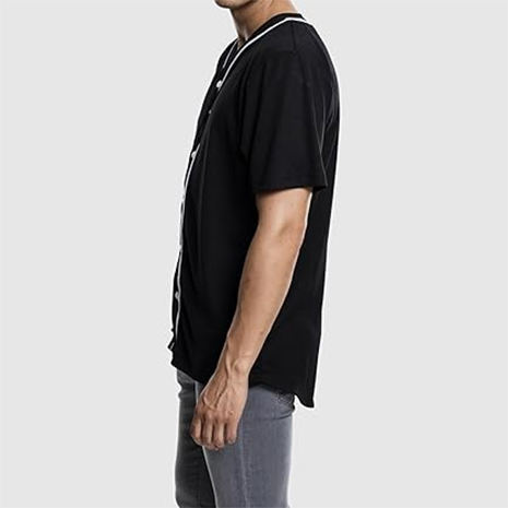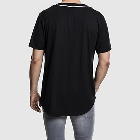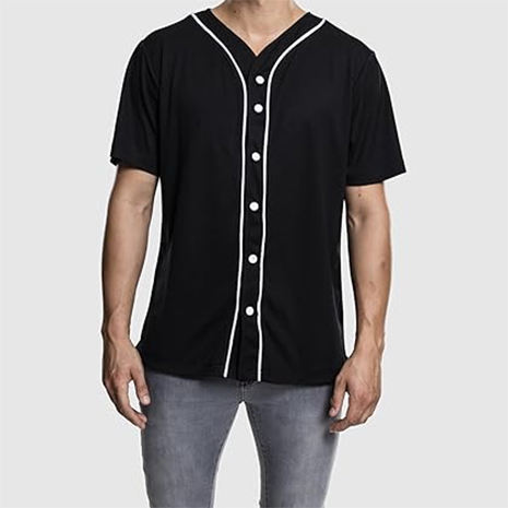 Bande de boutons respirante en polyester brodé pour ensemble uniforme de baseball américain, personnalisable, noir et blanc, col en V, manches courtes
