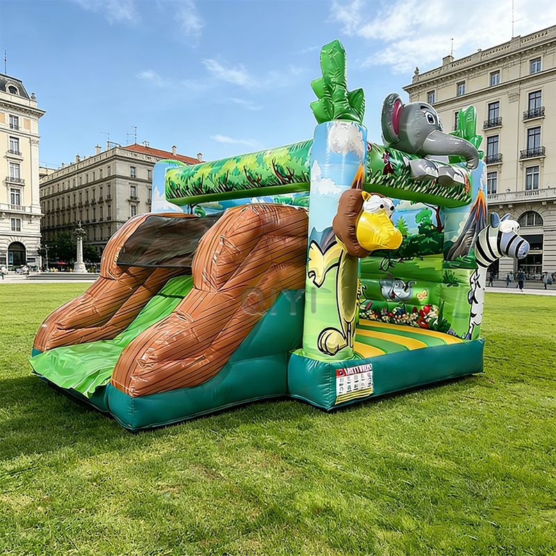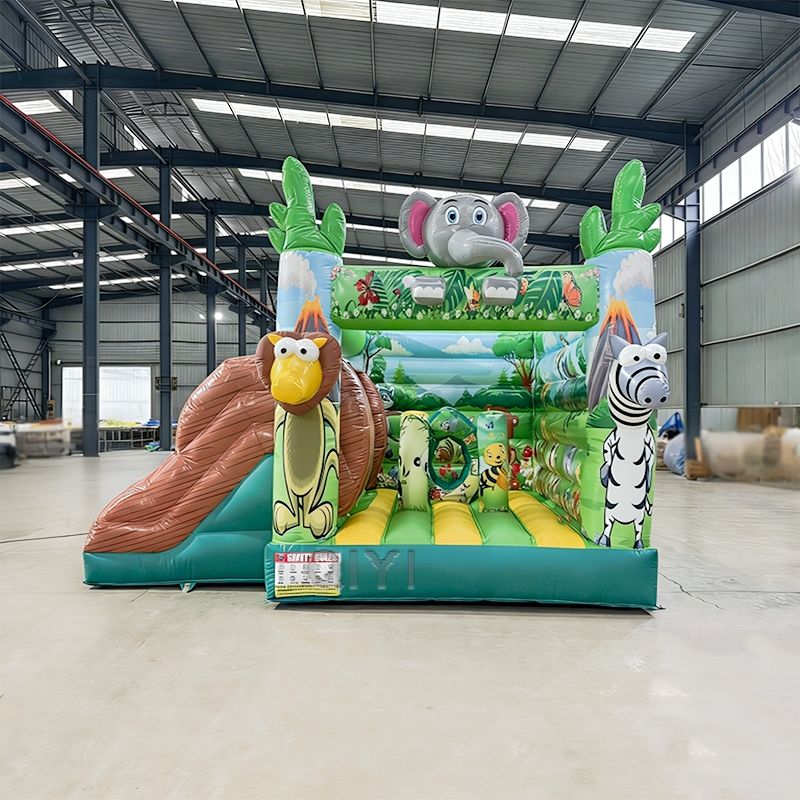Château gonflable Zèbre Lion Animaux de la jungle avec toboggan intégré pour enfants, idéal pour la location et les fêtes