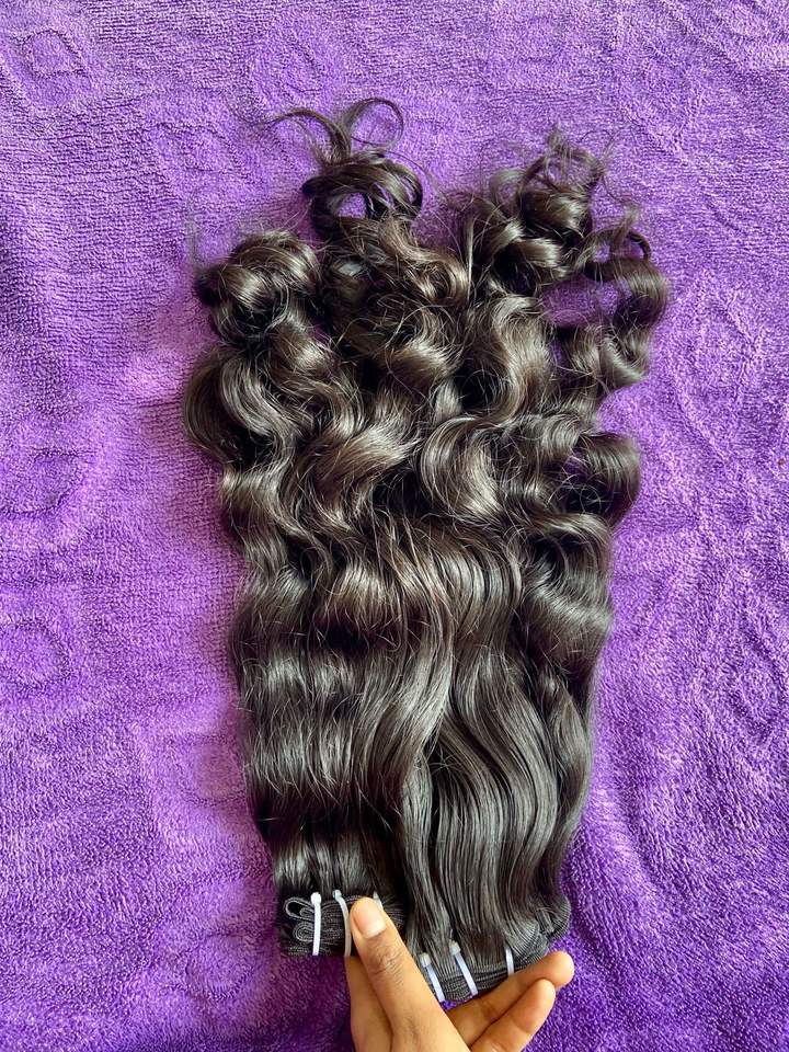 Extensions de cheveux indiens Remy ondulés et rebondissants, douces, brutes, double trame, non traitées, aspect naturel : modèle non permanent