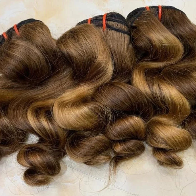 Cheveux Remy ondulés et rebondissants, couleur piano, double trame, provenant de cheveux vierges vietnamiens, qualité supérieure, échantillon gratuit