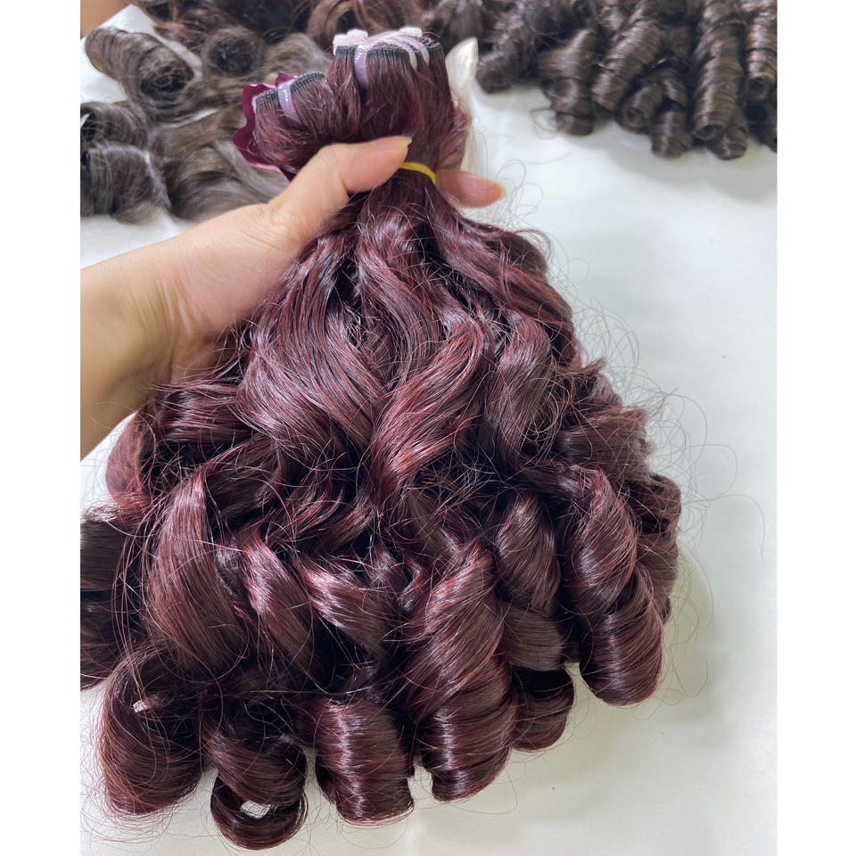 Bouncy curl big discount Super Double customized Raw Human Remy Hair Extensions Curly Cuticle Aligned Vietnamese Large Stock