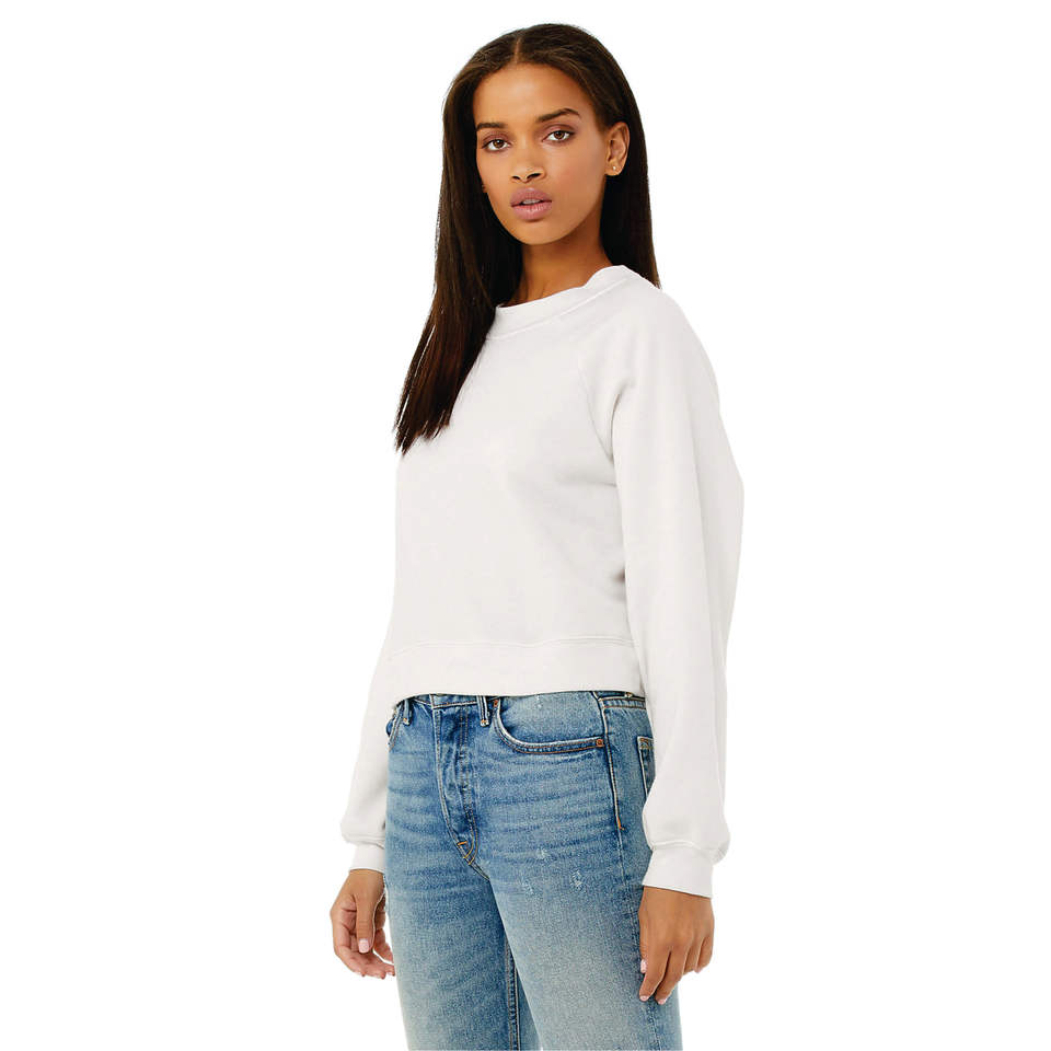 Pull-over à col montant pour femme, blanc vintage, en molleton 48% polyester et 52% coton peigné Airlume filé à l'anneau, coupe décontractée à épaules tombantes, avec capuche sur le devant