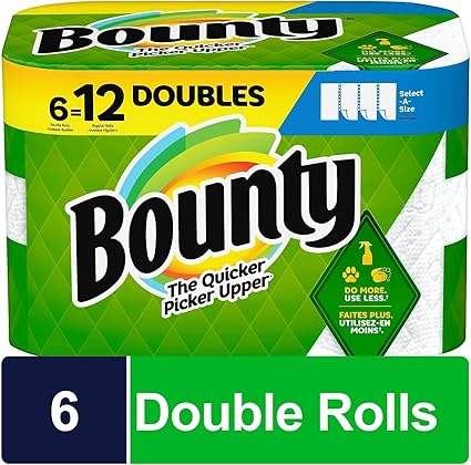 Serviettes en papier Bounty Quick-Size, blanc, 12 rouleaux de famille = 30 rouleaux réguliers