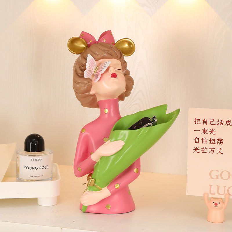 Bouquet Girl Art Vase Epoxy Resin Sculpted Figurine Ornament for Living Room Dining Table Porch Home Flower Arrangement