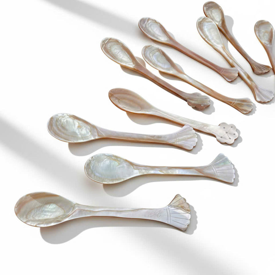 Boutique Mother of Pearl Shell Spoons Small Caviar Spoon Bulk Sustainable Kitchenware Set for Seafood Restaurant Catering Gift