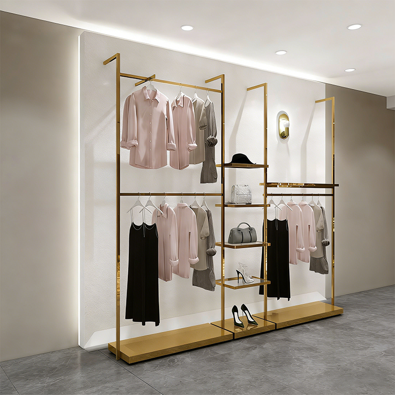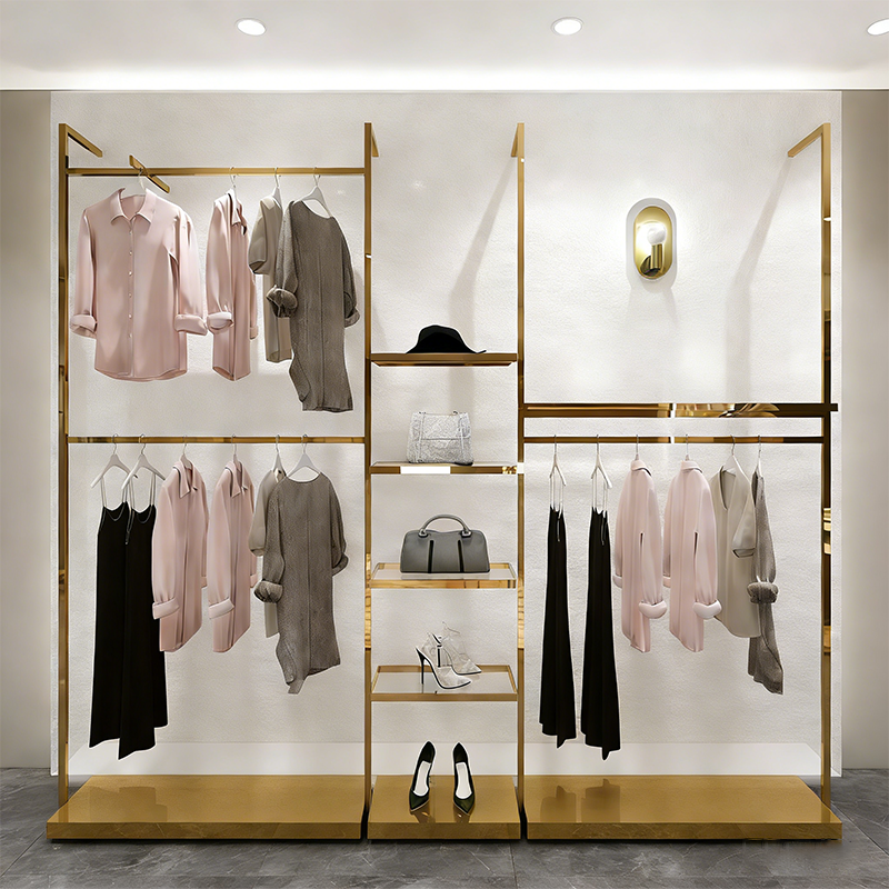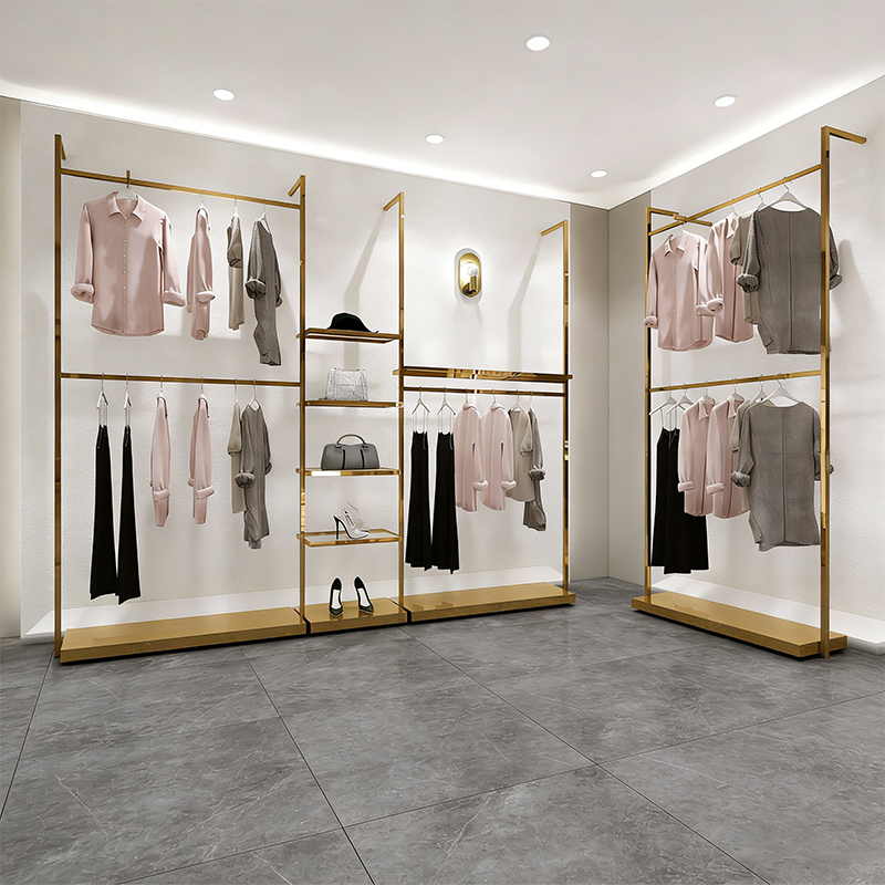 Boutique Store Clothing Display Rack Gold Clothes Display Racks Shelf for Clothing Shop Retail Metal Garment Display Rack