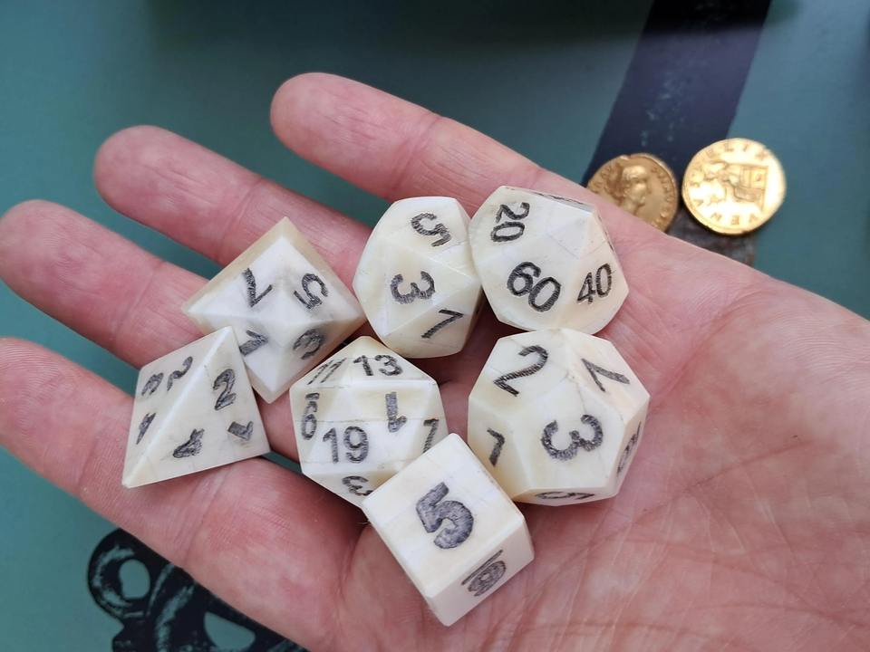 Dés en os de style boutique, dés en os polyédriques personnalisés avec impression pour jeux de table de luxe, accessoires de jeu en gros