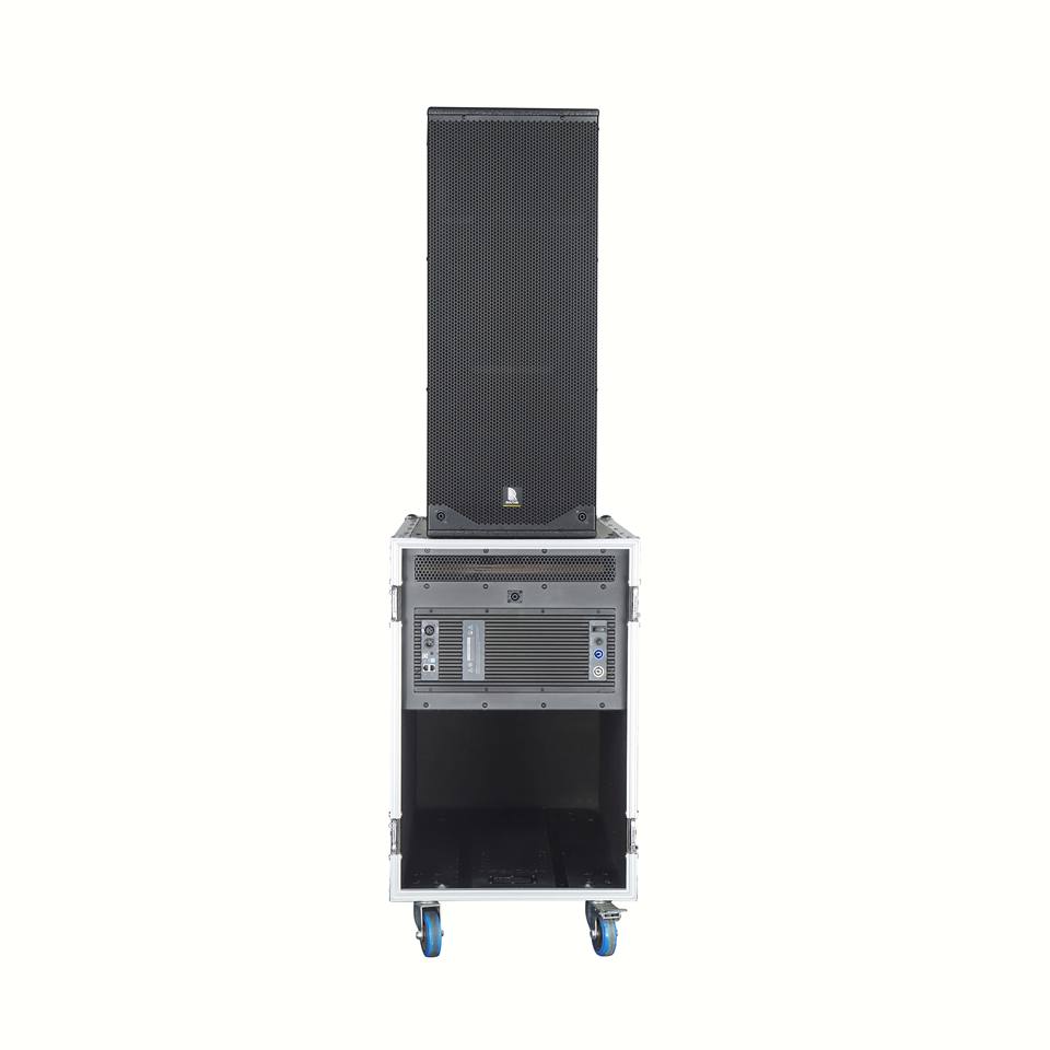 LF : 1 x 18", fe.MF : 2 x 12", fe.HF : 1 bobine mobile de 51 mm, fe.