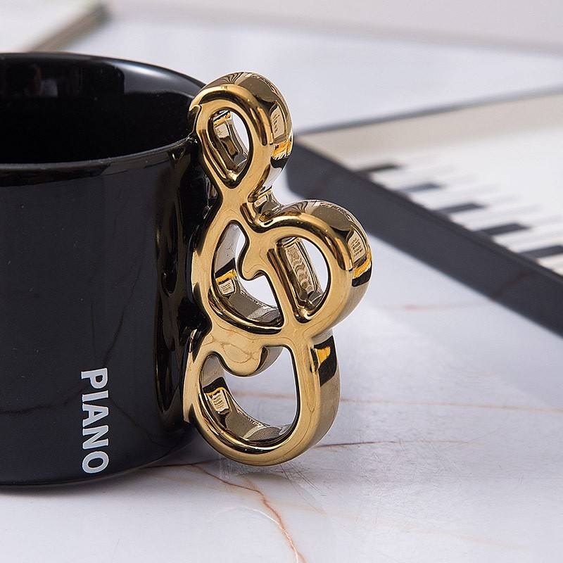 Ensemble tasse et soucoupe en céramique avec accent en forme d'arc (noir et crème) - Vaisselle chic pour le café/le thé à la maison