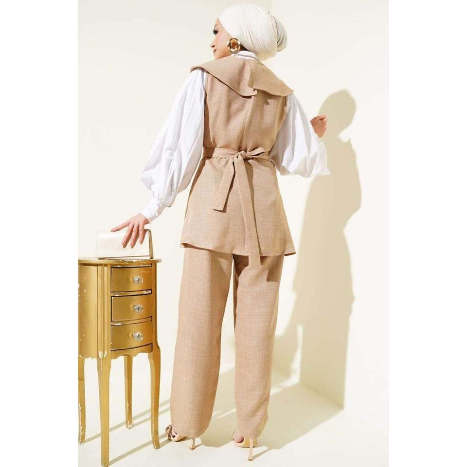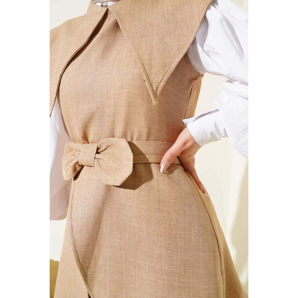 Ensemble 2 pièces à col marin détaillé avec nœud Beige