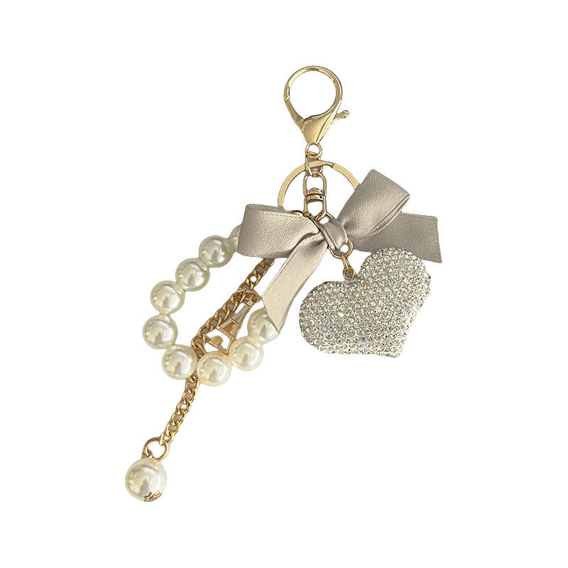 Nom du produit:Porte-clés pendentif coeur perle nœud