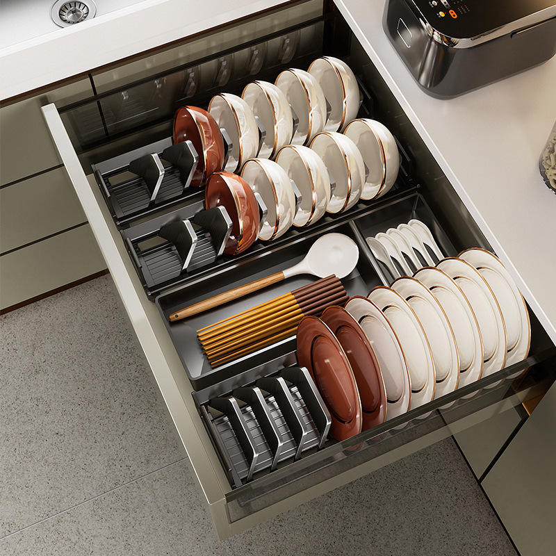 Support de rangement pour bol et assiette Organisateur de tiroirs de cuisine Boîte de rangement pour vaisselle et baguettes intégrée pour l'intérieur de l'armoire