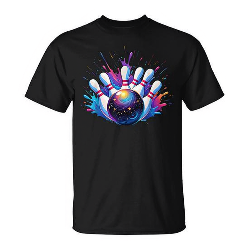 T-shirt unisexe pour adulte avec motif de taches de peinture colorées pour le jour du match de bowling, vêtement promotionnel